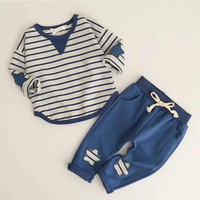 【商品の説明】 商品名:上下セット サイズ: 80:Tシャツ:着丈34 袖丈30 ズボン:総丈41 90:Tシャツ:着丈35 袖丈31 ズボン:総丈45 100:Tシャツ:着丈37 袖丈32 ズボン:総丈48 カラー:ブルー 素材: 【その他】 ボーダー長袖と膝星デザインでシンプルです。 男の子の外出が簡単にできます。 【ご購入前に必ずご一読下さい】 ※モニタ環境によって、商品の色合いが多少異なる場合がございます。 ※色落ちの恐れがありますので、他のものと分けてお洗濯して下さい。 ※商品をお安く提供させて頂く為、検品後のアイロン掛けは省略させて頂いています。 ※発送時も簡易梱包の為、お受け取り時にたたみ皺があると思いますがご了承下さい。 ※また、商品発送後のキャンセル・ご返品はできません ※商品は格安海外ノーブランド製品のため、多少のほつれや縫製の甘さ、生地特性上の匂いなどが感じられる場合がございます。 ※日本製よりサイズが小さくなる場合がございますのでお手持ちの商品と比較した上でのご購入をおすすめいたします。 ※商品ラベルがない物、洗濯ネームが日本語表記でない場合がございます。 ※上記内容をあらかじめご了承頂き、お買い物宜しくお願い致します。