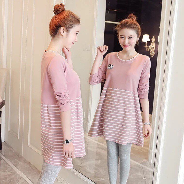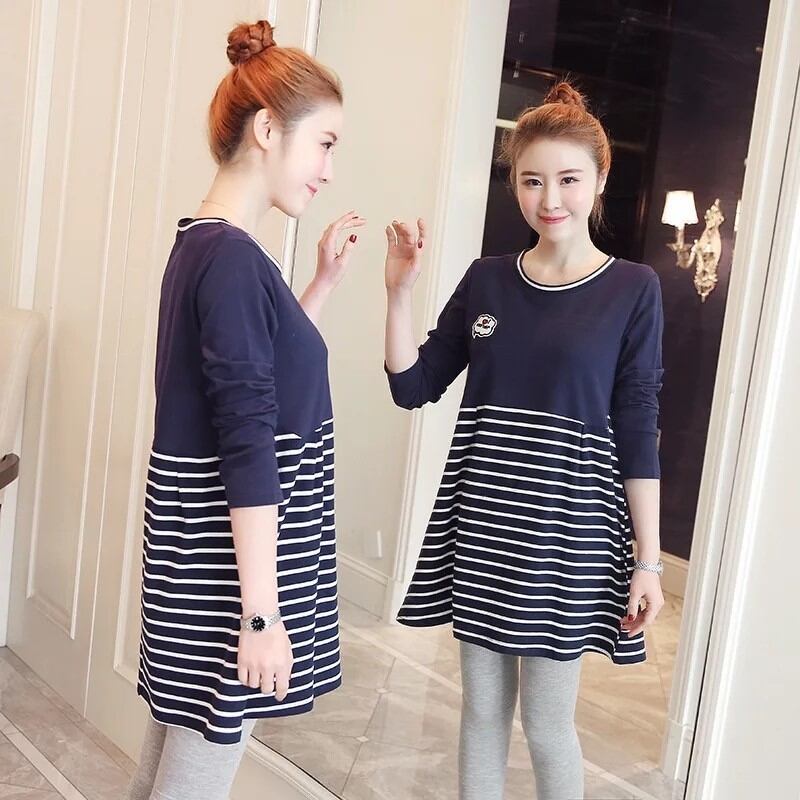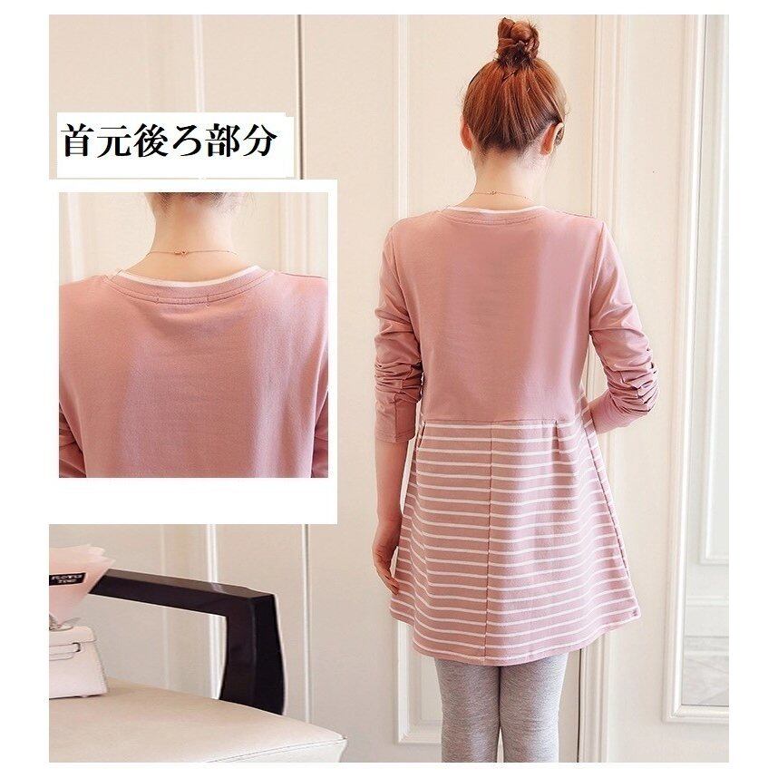 マタニティウェア トップス 長袖 妊婦 大きいサイズ Tシャツ ボーダー柄 Aライン